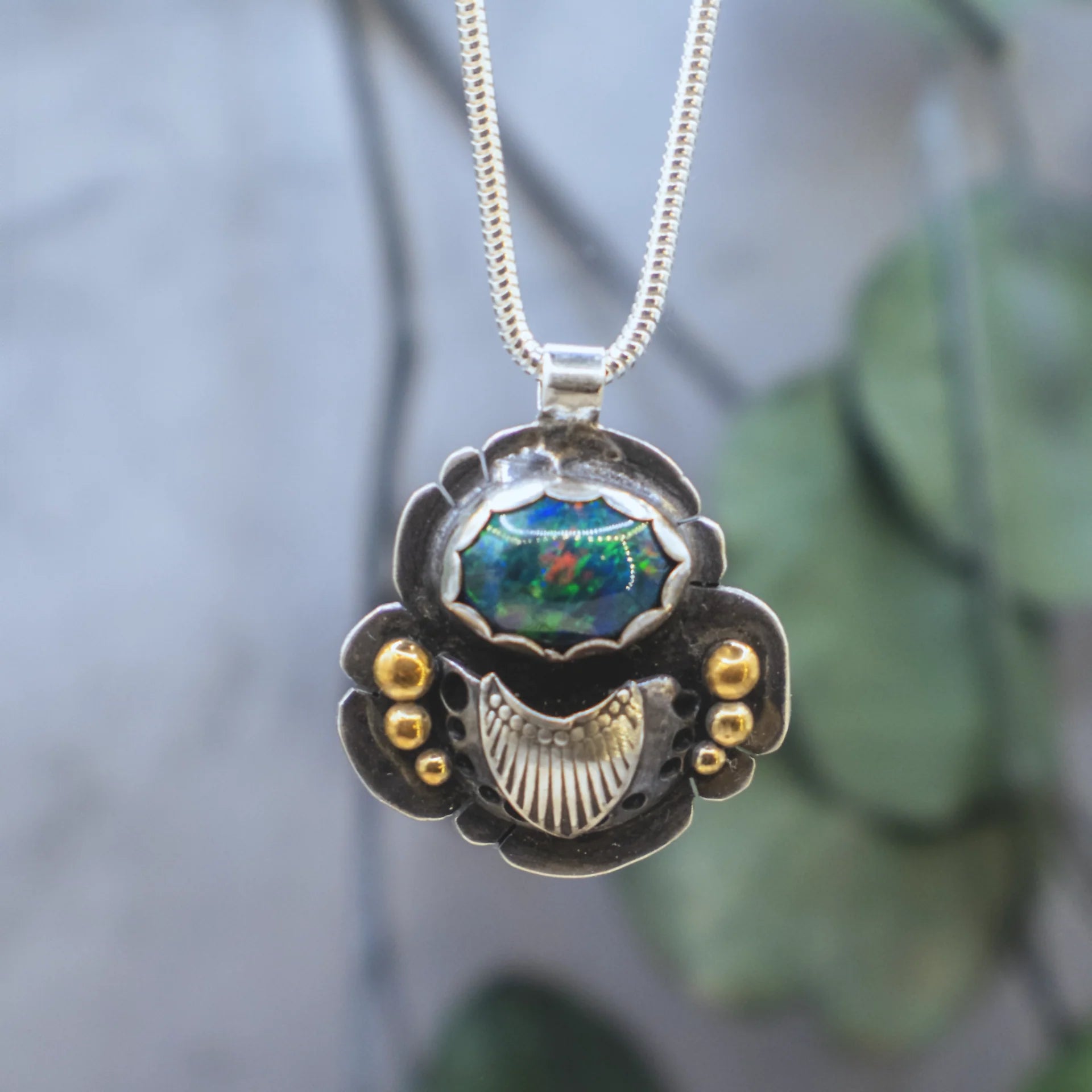 "The artistry of this pendant is superb, and the black opal is gorgeous! I love that it is expertly crafted and so unique! Thank you!"
