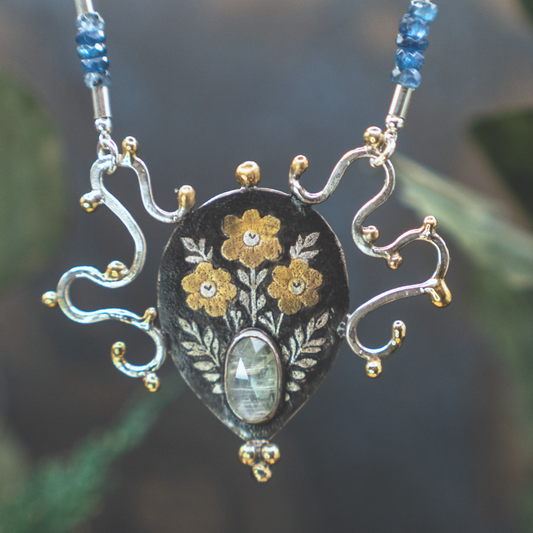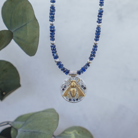 Artemis Sapphire Coin Necklace I - Sterling Silver, 24K Gold, and Natural Sapphire