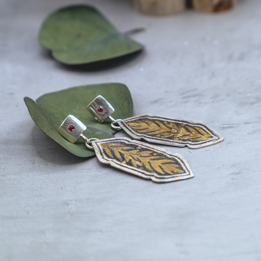 Shining Vines - Orange Sapphire, Silver, and 24k Gold Earrings