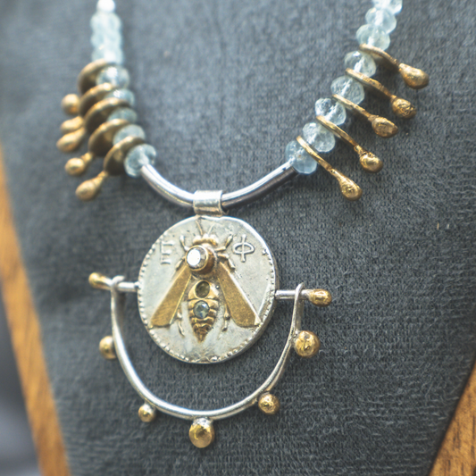 Hive Oracle - Sterling Silver, 24K Gold, Montana Sapphire, Diamond, and Aquamarine