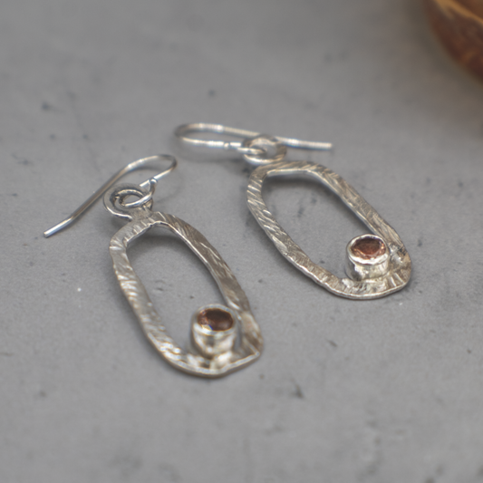 Seed Pod Earrings II - Oregon Sunstone & Sterling Silver