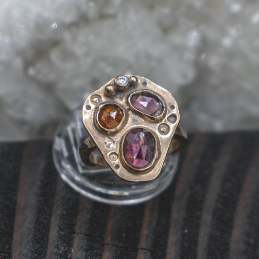 Midsummer Ember Ring II - Multi-colored Tourmaline, White Diamond, 18K Gold Vermeil Ring