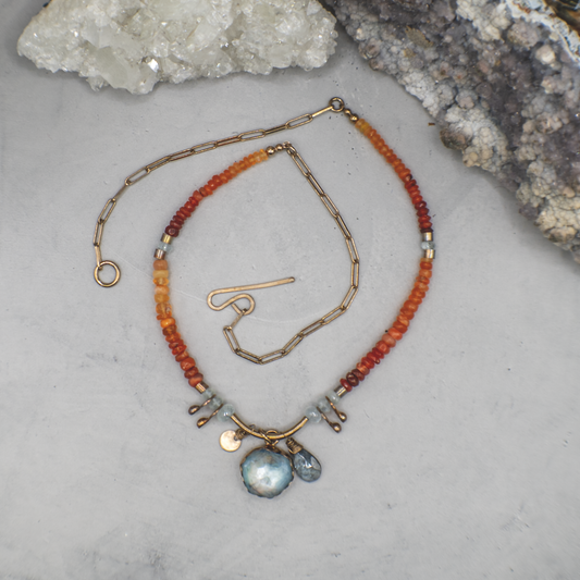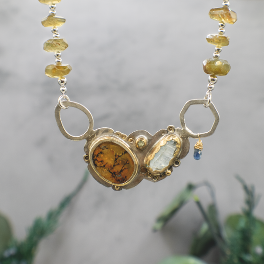 Forest Reverie III - Sterling Silver, 24K Gold, Dendritic Quartz, Sapphire, Vessonite, Kyanite Necklace