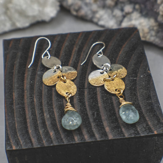 Eclipse Drift Earrings - Sterling Silver, 24K Gold and Aquamarine Earrings
