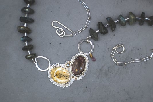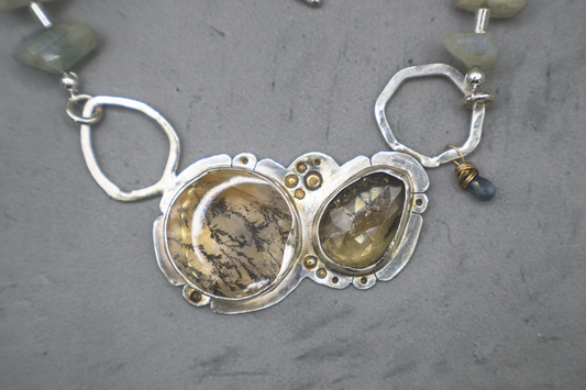 Forest Reverie I - Sterling Silver, 24K Gold, Dendritic Quarts, Tourmaline, Labradorite Necklace