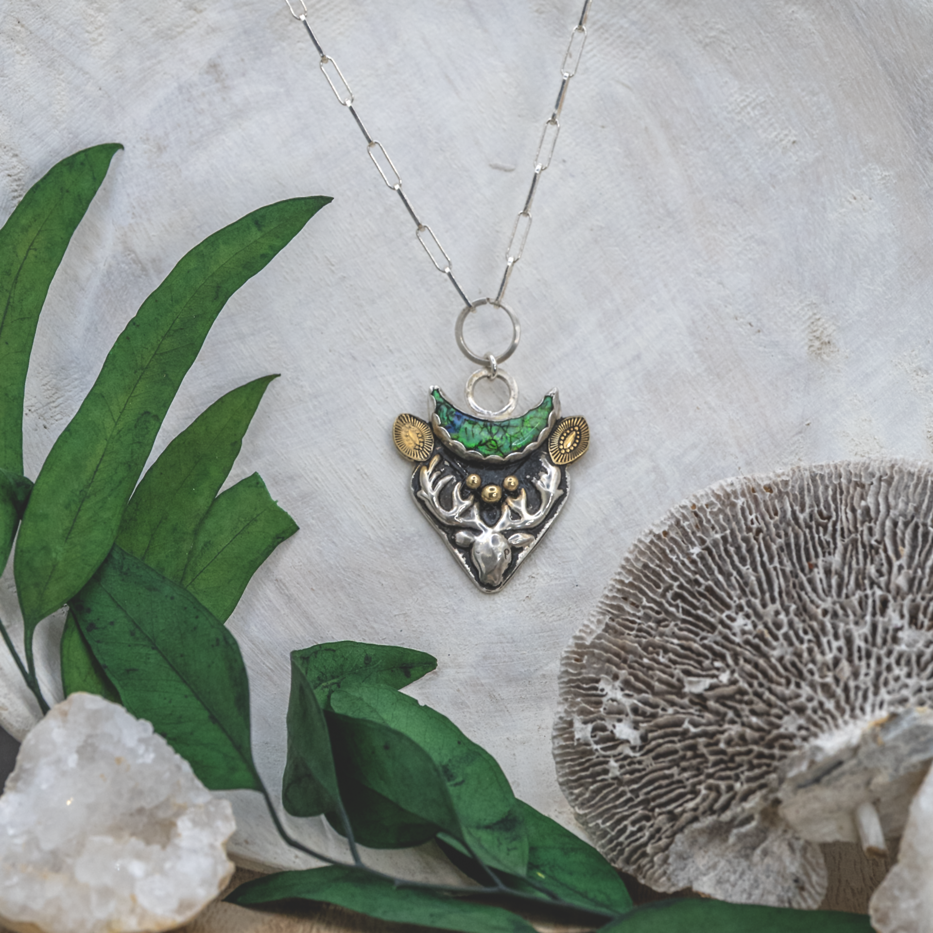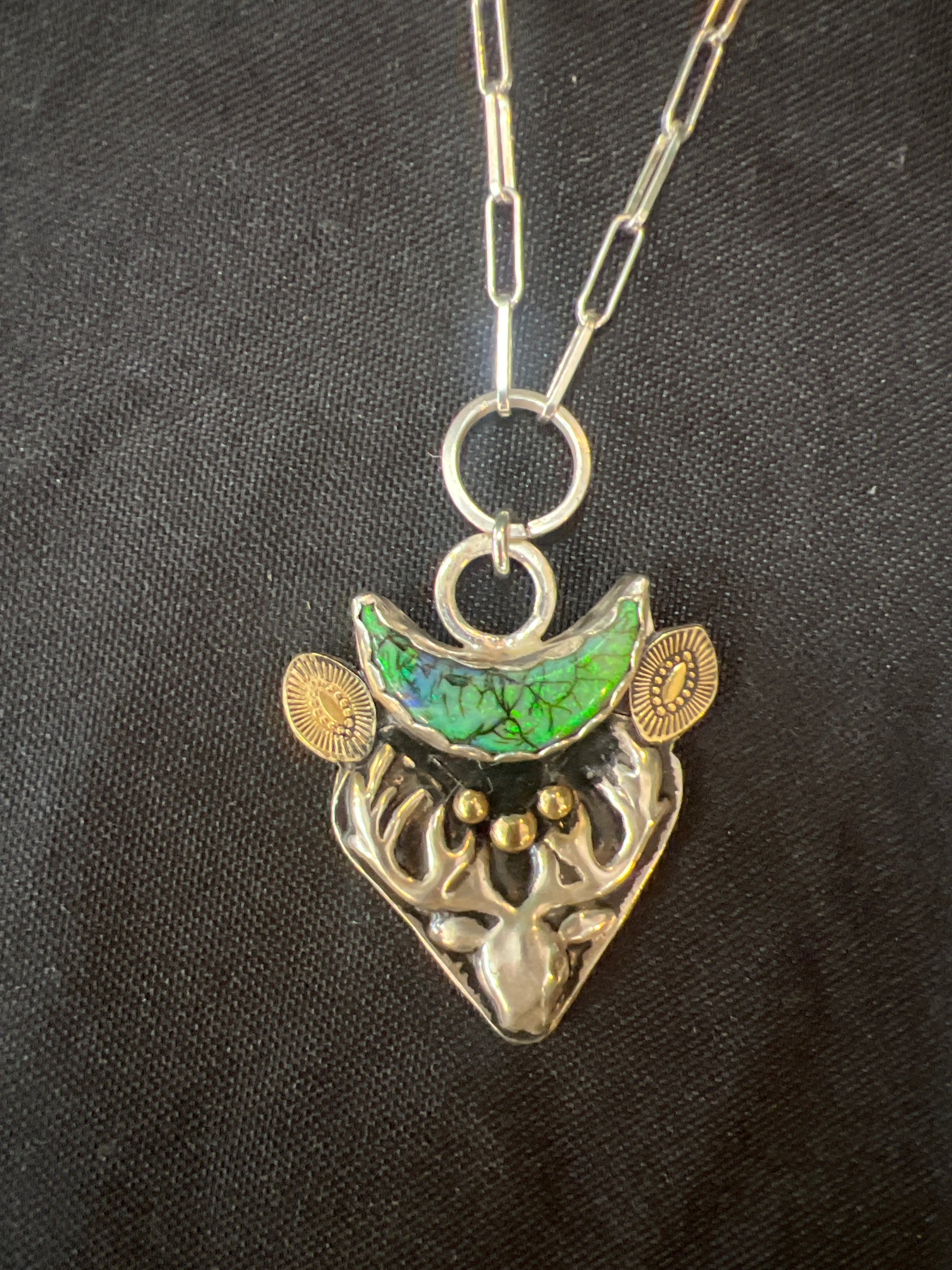 Sterling Silver layered necklace with highly detailed focal pendant including sterling opal crescent moon .
